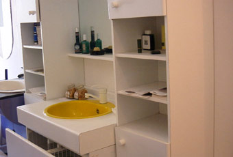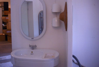 I hvid plastlaminat vaskemodulet har usædvanlig udtræk